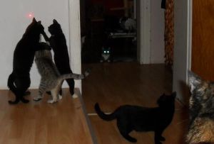 Da spielen die Kleinen. Die werden alle ganz wild, wenn Mama mit dem Laserpointer rumfuchtelt.