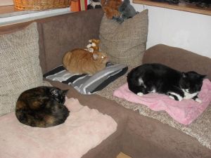 Und jetzt bin ich echt müde und muß ein wenig ruhen. Ist doch immer sehr anstrengend, diese ganze Schreiberei. So als Katze ist man ja eigentlich gar nicht dafür geschaffen. Geht auch nur, weil ich was Besonderes bin. Ich soll Euch aber noch sagen, dass die Mama wirklich richtig viel zu tun hat, noch mehr als sonst, weil ja schon bald der Second-Hand-Laden aufgemacht wird. Darum dauert es manchmal etwas länger, wenn Ihr auf eine Antwort von ihr wartet aber sie meint das nicht böse oder kann Euch nicht nicht leiden. Das liegt nur an der Zeit, die immer viel zu wenig ist und ihr tut das auch voll leid. Und vielen Dank an alle, die uns immer so toll unterstützen und Pakete schicken oder bringen, mit Kleidern oder Futter oder anderen Sachen. Euch brauchen wir sehr dringend! Aber das wißt Ihr ja. Und danke auch an alle Paten! Ich hab ja keinen. Brauch ich aber auch nicht. Das wißt Ihr ja auch. Ich bin ja Mamas Lunchen!