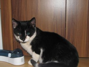Der kleine Herr Pieper, also Ricky, hat jetzt auch eine Patin. Jetzt darf er auch immer was essen. Aber der isst soooo viel und hört gar nicht wieder auf! Eigentlich sitzt er immer am Futternapf, wenn er nicht schläft oder spielt. Oder sich mit Brownie prügelt. An uns andere traut er sich ja nicht ran! Aber wenn der erstmal grösser ist ... da kann Mama dann auch nicht mehr mit mir schimpfen, wenn ich ihn unter den Schrank jage oder vom Sofa werfe oder auf ihm drauf sitze.