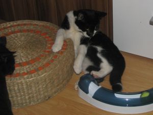 Jetzt guckt mal, Sweetie ist schon fast so schön wie ich! Die geht immer noch ein bißchen krumm und macht sich klein aber sie läuft immer gleich zur Mama hin, wenn die kommt und mag sich auch gerne streicheln lassen. Sweetie ist voll lieb. Die nervt gar nicht und macht überhaupt keinen Quatsch. Aber das traut sie sich bestimmt nur noch nicht. Weil, sonst wär´s ja gar keine richtige Katze. Das kommt schon noch. Hat Mama auch gesagt.