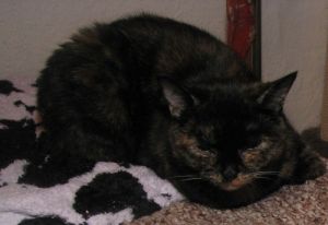 Und das ist die Motte alleine in ihrem Lieblingskorb. Der geht es auch schon ganz gut.