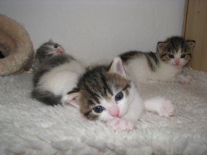 Sie sind etwa 12 Wochen alt, sehr schmusig und lieb und demnächst vermittelbar.