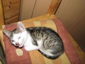 Noch ein bißchen gespielt und gekuschelt und dann war auch das Zwerglein endlich müde und schlief ruhig und friedlich auf "seinem" Stuhl, den er sofort in Besitz genommen hatte, ein.